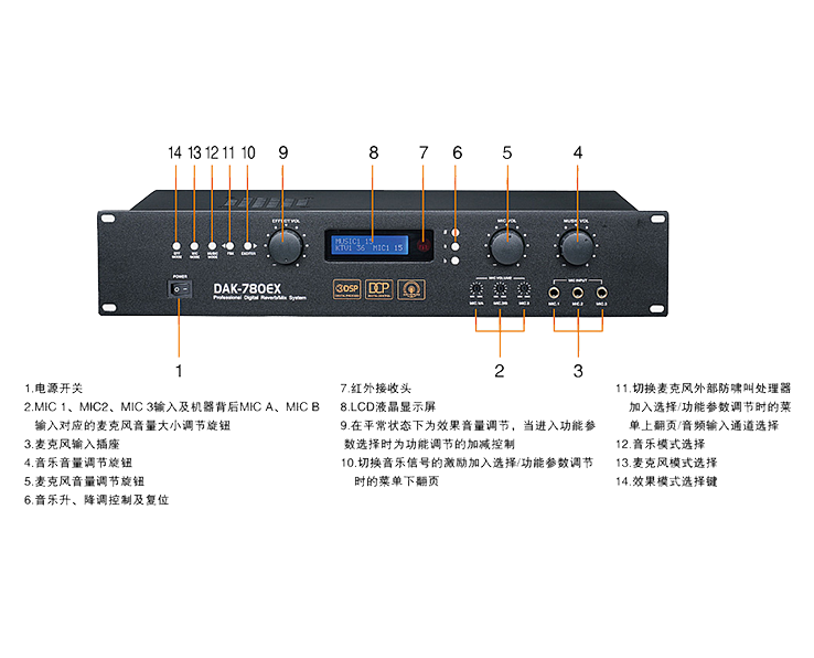 音乐麦克风七段均衡,可独立调节